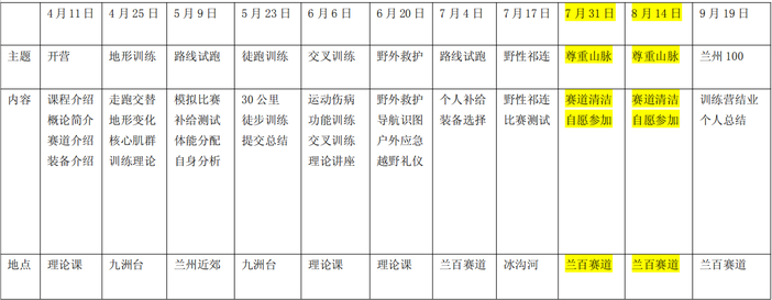 2021兰州100越野跑练营初步日程
