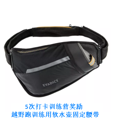 坚持参加训练营还可获得兰州迪卡侬赠送的越野跑装备奖励——3次打卡奖励可调节空顶帽、5次打卡奖励越野跑训练用软水壶固定腰带(可同时容纳1个500ML软水壶、2支能量胶、一部iphone12尺寸手机)、7次打卡奖励RUNPERF成人跑步眼镜(3类镜片、100%过滤紫外线:非常适合光照较强的晴天)。